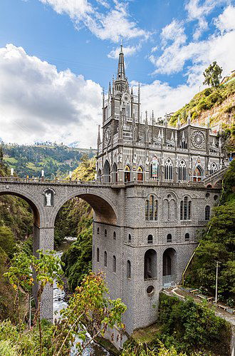 O Santuário de Nossa Senhora do Rosário de Las Lajas é uma imponente basílica católica menor, notável por sua arquitetura neogótica e por sua localização espetacular. Situado dentro do cânion do rio Guáitara, no município de Ipiales, no sul da Colômbia, a apenas alguns quilômetros da fronteira com o Equador, o santuário se ergue sobre uma ponte de 50 metros de comprimento, que une as duas margens do desfiladeiro.